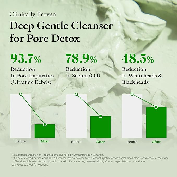 - SEBUM CONTROL & SKIN EXFOLIATION: Enriched with 49% green tomato extract, No 1 Fully Clay Mask Cleanser offers excessive sebum control and gentle exfoliation. It deeply cleanses while preserving the skin's natural balance, making it perfect for anyone aiming to enhance their complexion and achieve a refined look with pore detox. Ideal for integrating with a skincare routine that values natural glow, health.