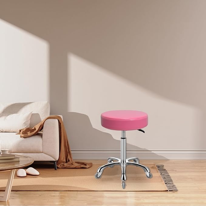 Rolling Stool with Wheels, Heavy Duty 400 lbs Stool for Shop Guitar Lab Tattoo Workbench Medical, Adjustable Swivel Chair (Pink)