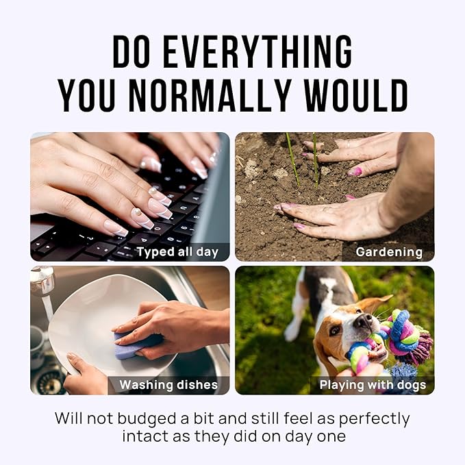 - Do Everything You Normally Would: All BTArtbox acrylic press on nails offer feature protective building gel finish so that you are able to do everything you normally would, such as typing, gardening, houseworking or playing with your pet. They will not budged a bit and still feel as perfectly intact as they did on day one