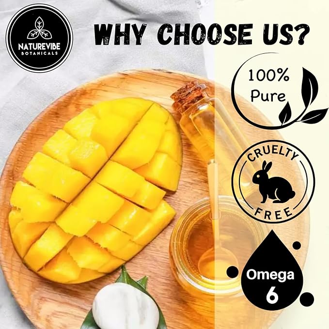 - ✅Mango Oil is a natural moisturiser that hydrates and soothes your skin, leaving it soft and healthy-looking all day.