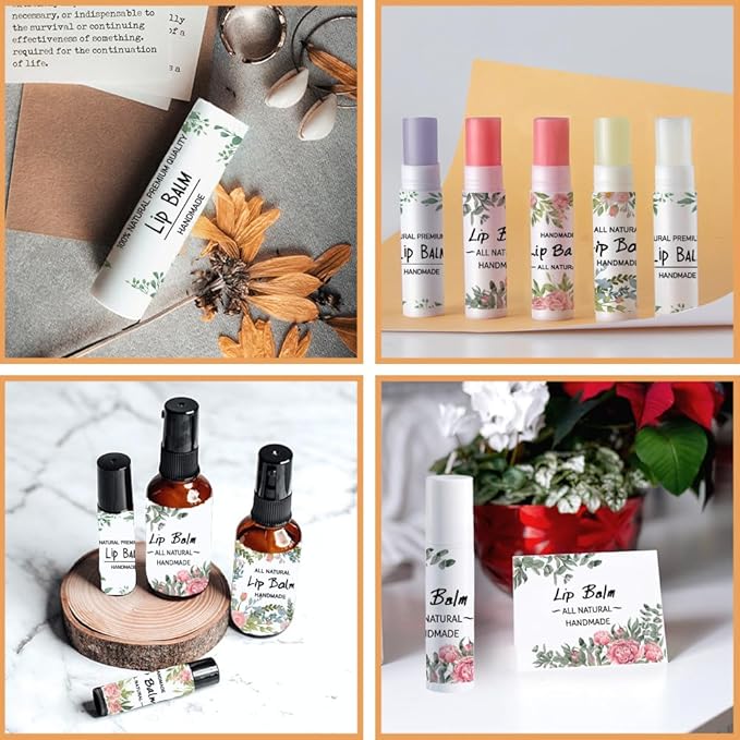 OLYCRAFT 100Pcs 4 Style Lip Balm Label Sticker Flower Pattern Labels Stickers Adhesive Lip Balm Label Sticker Plastic Lipstick Tag Stickers for Lip Balm Container Tubes 1.7x2.1 inch