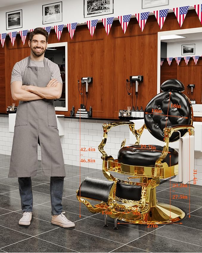 - Manifesting Noble Taste: Timeless classic button design adds elegance to the black salon chair gold base chair, enhancing your salon's ambiance. Its classic look & comfy experience will captivate every man, making them linger