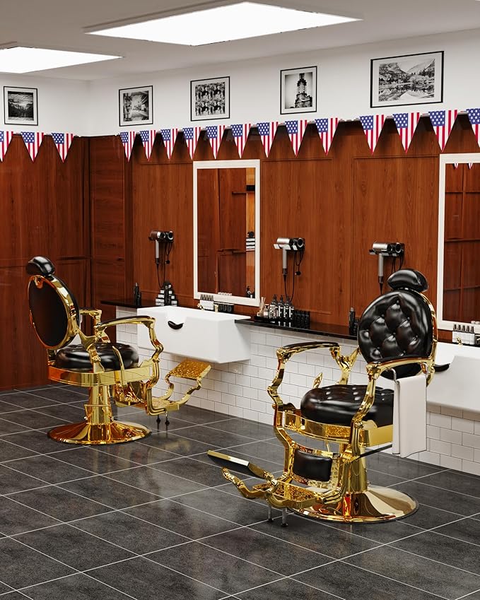 - Robust Stainless Steel Foundation: Crafted with a high-quality gold stainless steel frame, this barber chairs for barbershop boasts a heavy-duty hydraulic pump & oversized base, ensuring durability & a safe, comfortable grooming experience for men