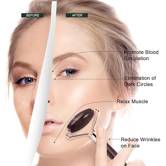 - 【Natural Jade Material】This facial roller gua sha are made of natural jade,which is crystal clear, beautiful color. The handle part of the jade roller, specially selected zinc alloy materials that will not rust to make.