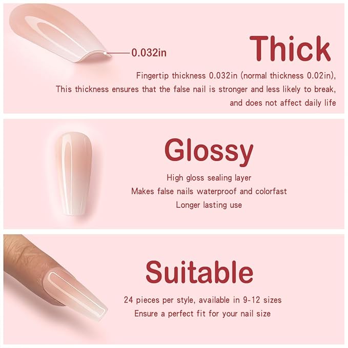 - 🌟realistic fake nail kit: Yivaiks coffin press on nails visually elongate your fingers, with a nude base color that is close to flesh tone, and are just as realistic to use as real nails. for people with soft nails, stick on nails can also protect your nails from external damage and cover up any blemishes or imperfections on your fingernails, making your nails look more perfect.