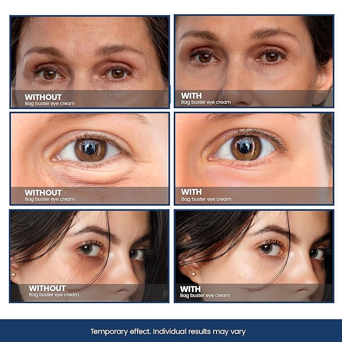 - ✅ [ SKIN CONCERNS ] – Bag Buster Advanced Anti-Aging cream works wonders on Under eye bags, Puffy eyes, Wrinkles, Crow’s feet, Fine lines, Smile lines, Under-eye Puffiness and much more. Instantly firms and smoothens the skin for more youthful appearance.