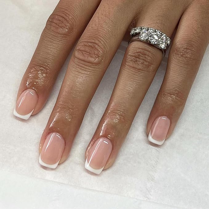 - How Natural They Are: These white French press on nails square nails designs look very natural,with a perfect that fits your nail bed,and a nude pink base color that gives the appearance of real nails.French tip press ons nails Red can create your own fingertip art and make your nails your fashion statement!With short press on nails French tip,you can achieve a natural, elegant look without the salon visit