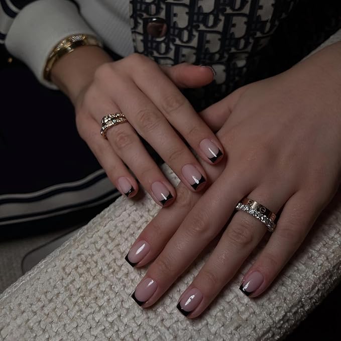 - How Natural They Are: These black French press on nails square nails designs look very natural,with a perfect that fits your nail bed,and a nude pink base color that gives the appearance of real nails.French tip press ons nails Red can create your own fingertip art and make your nails your fashion statement!With short press on nails French tip,you can achieve a natural, elegant look without the salon visit