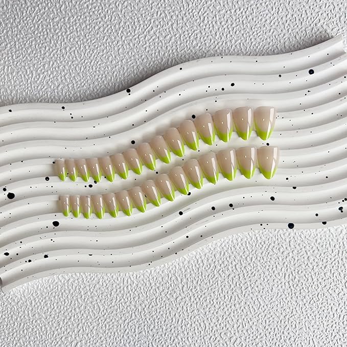 - Beauty in Every Fingertip: Fluorescent green French press on nails oval nails suitable for various social occasions great for nails salon,DIY home nails art.Perfect to be used on wedding,working,prom,dating,and medium length press on nails almond also suitable for Valentine's,Mother's Day and other festival.Medium short almond press on nail is given the perfect surprise for partners,family,friends
