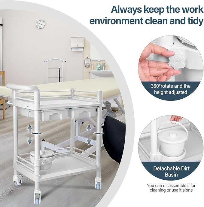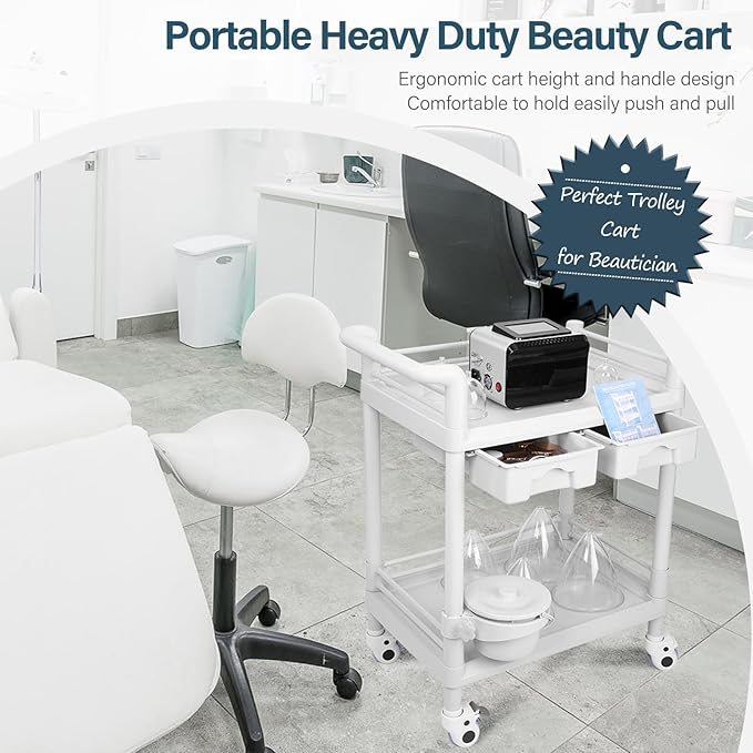 - Heavy Duty ABS Esthetician Cart: Medical utility cart is made of durable ABS material, allowing withstand a heavy load-bearing capacity of around 330 lbs to ensure safe and stable placement of your devices
