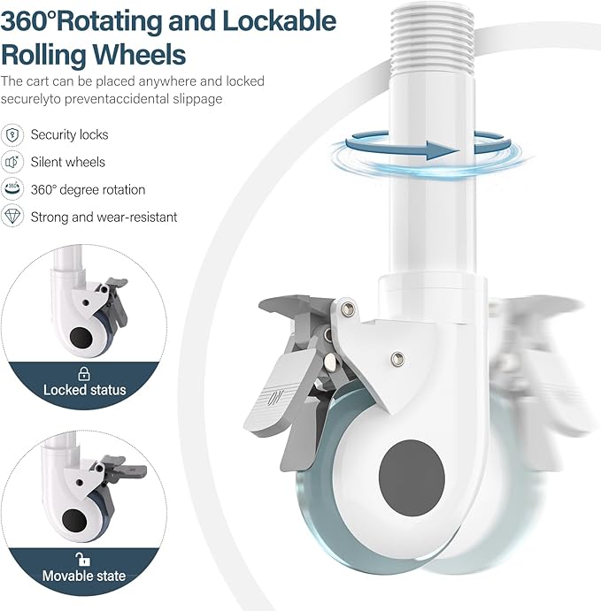 - Comfortable Handling: The ergonomic handle provides a comfortable grip, making pushing effortless. Equipped with Four silent swivel wheels allow for 360-degree rotation, making it easy to move around and ensuring stability, while two lockable wheels prevent sliding and secure positioning