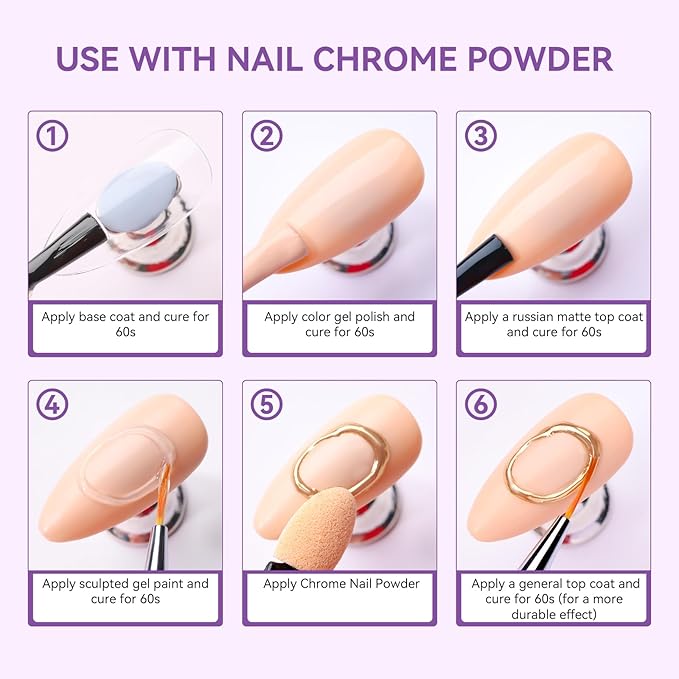 - Apply With Chrome Nail Powder: With micro 3d gel paint for nails art, you can also mix it with chrome nail powder to create even more mesmerizing and futuristic nail art designs. The possibilities are endless, and your creativity is the only limit!