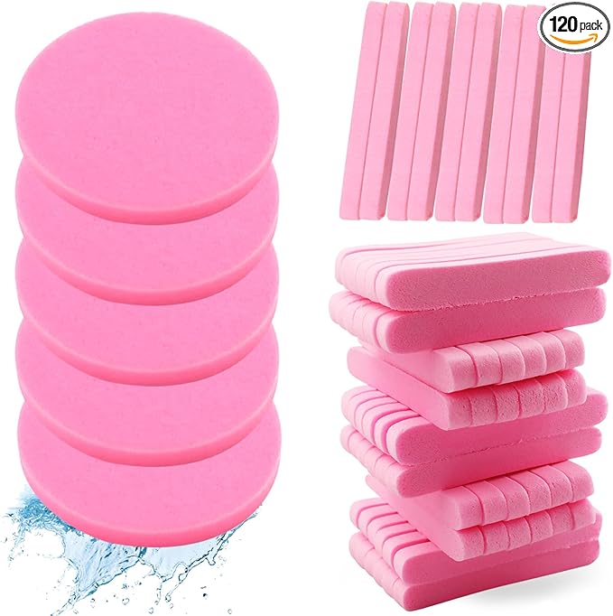 120 Pcs Pink Compress Face Sponges - Compact Facial Sponge Set for Cleansing, Makeup Removal, Exfoliation