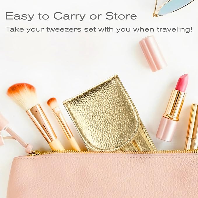 - 【PORTABLE PACKAGING】-This professional tweezers come with a premium leather case, each tweezer has an individual pocket to keep the eyebrow tweezers clean and less likely to be lost, with a silicone tip cover to keep the tweezers safe. Easily fits into your pocket, purse, or gym bag, stylish and convenient