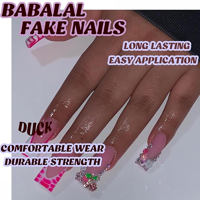 - 【Package Contains】You will get 24 pieces of long duck press on nails with 12 different sizes, 1 nail glue for DIY your own nails. you can choose the most suitable false nail for yourself, it is easy to trim and file them to in any length and shape you like