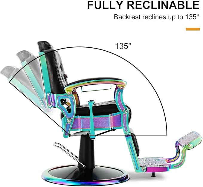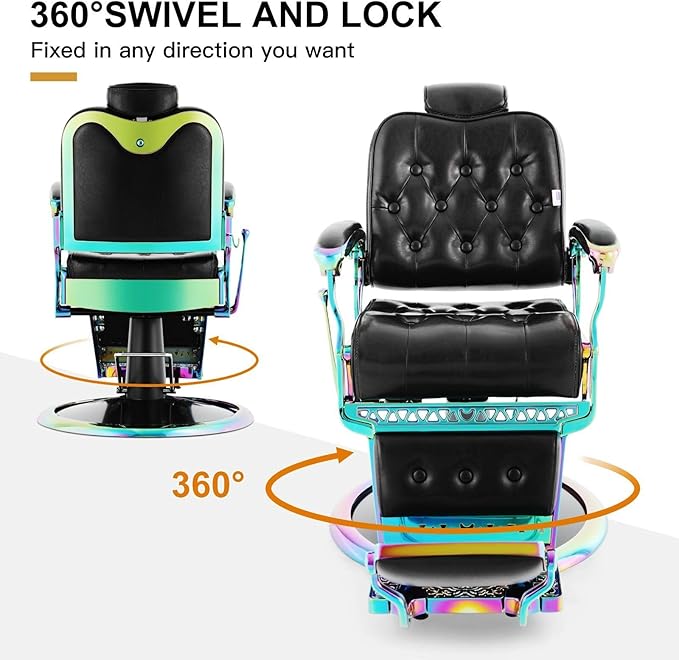 - Premium Material: Made with soft high-quality thick leather, this barber chair is waterproof, and can be effortlessly cleaned. Padded with high-density sponge provides your clients fully comfortable and relaxed whilst sitting. The sturdy circular chrome steel base gives the chair durability to last for long years