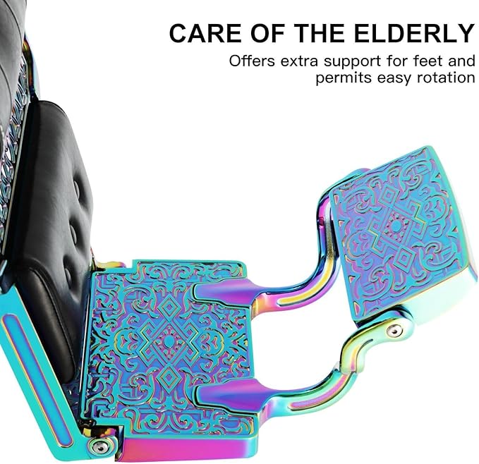 - Durable and Sturdy Construction: Equipped with heavy duty steel frame, this chair not only ensures a stable support for your customers but also provides a reliable use for long term. Chrome finished round hydraulic pump and base with classic style footrest can withstand 700 LBS, providing better stability and preventing unsteadiness from various movements. It is also designed with handrails that could free your hands and prevent you from falling down