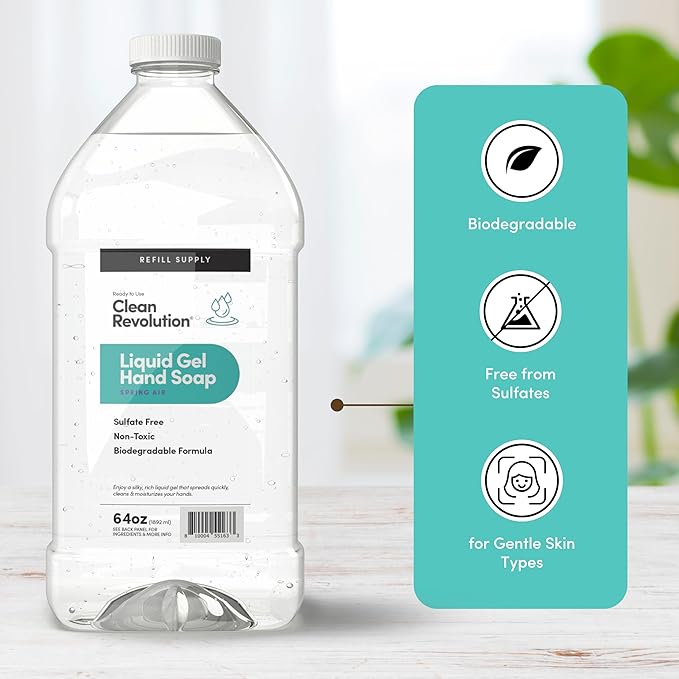 Clean Revolution Liquid Gel Hand Soap, Silky Rich Liquid, Quick Lather, Fast Rinsing, Contains Real Essential Oils (Spring Air) 64 Fl Oz