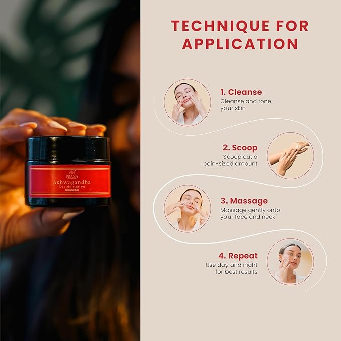 PRANA Ashwagandha Day Face Moisturizer - Natural Face Lotion with Ayurvedic Ingredients like Licorice, Almond Oil, Gotu Kola - Skin Repair & Hydration, Vegan, Fragrance & Cruelty-Free Lotion (50ml)