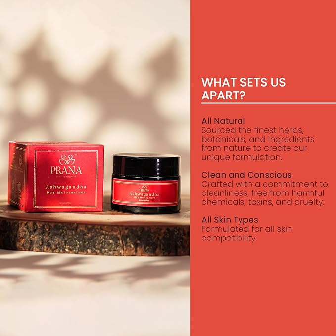 - ORGANIC ASHWAGANDHA: PRANA moisturizer face lotion contains amino acids that may help improve the skin’s defense against environmental stressors and promote a revitalized complexion. This facial moisturizer is ideal for boosting skin resilience and offering the best natural face moisturizer to restore your skin’s natural glow.