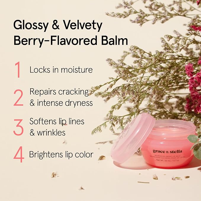 - Use As A Lip Mask Overnight Or Daytime Gloss - Can be applied as a nourishing lip sleeping mask for overnight hydration and lip repair or as lip gloss for a shiny and berry-flavored pink finish to the lips!