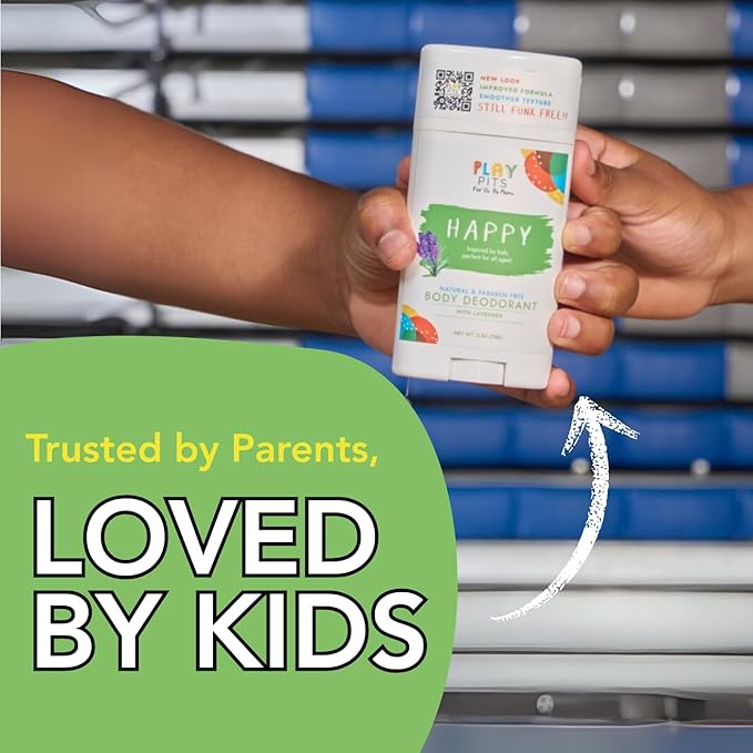 PLAY PITS - Kids Deodorant for Girls & Boys - Natural - Aluminum-Salt Free - Safe for Sensitive Skin - HAPPY is Infused w/Lavender Essential Oils - Non-Toxic & Paraben Free - 2.65oz - 2pk