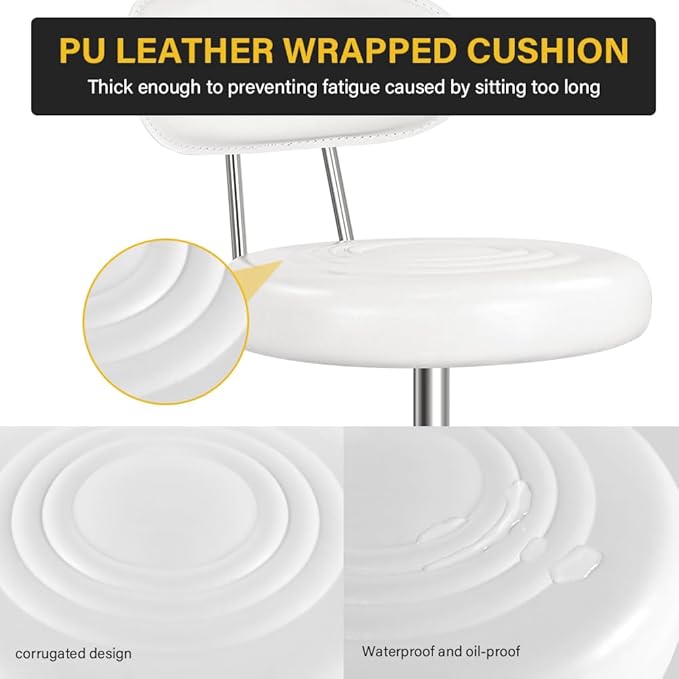 Rolling Stool with Wheels Swivel Stool with Back Height Adjustable Chair PU Leather Rolling Chair Ideal for SPA Salon Home Office Drafting Work (White)