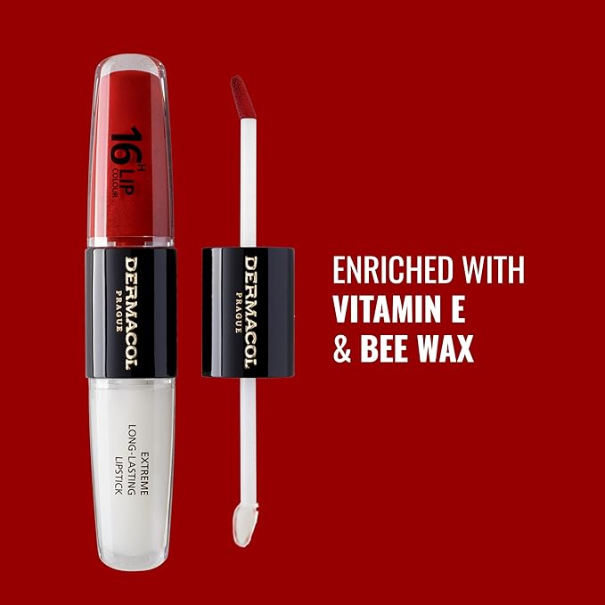 Dermacol NEW 16-Hour Lip Colour, Highly Pigmented Glossy Lip Stain, Two-Phase Lip Plumper Gloss, Kissproof Lip Makeup Products with Matte and Glitter Finish, n. 20