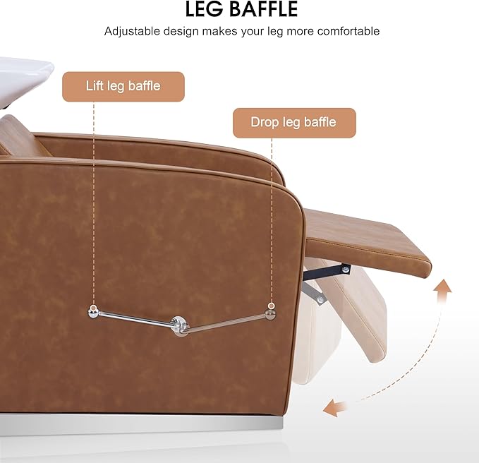- Classic Design: The shampoo barber backwash chair features the classic style with smooth and graceful lines. Curved armrests and backrest are comfortable and beautiful, with the stainless steel base and adjustable leg-rest to make your barbershop more modern and elegant.