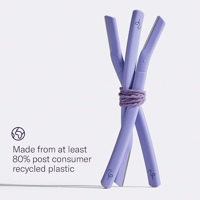 - CURVED HANDLE FOR CONTROL: The women's face shaver features a curved handle made from at least 80% recycled plastic