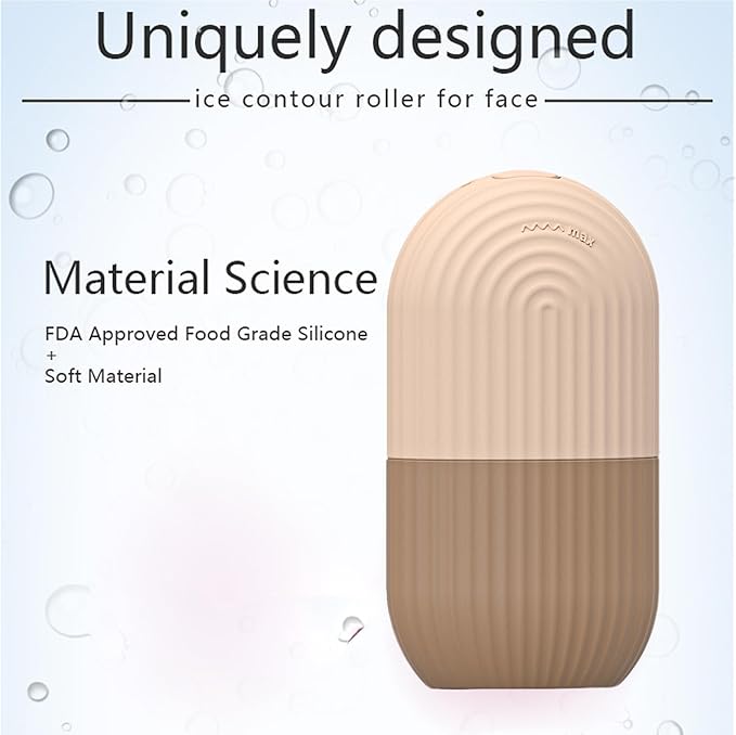 Ice Face Roller, Reusable Silicone Mold Face Massage Eye Facial Beauty Skin Care Tools Apply Ice for Shrink Pores Anti Wrinkle Reduce Puffiness Improve Skin Elasticity, Striped, Brown