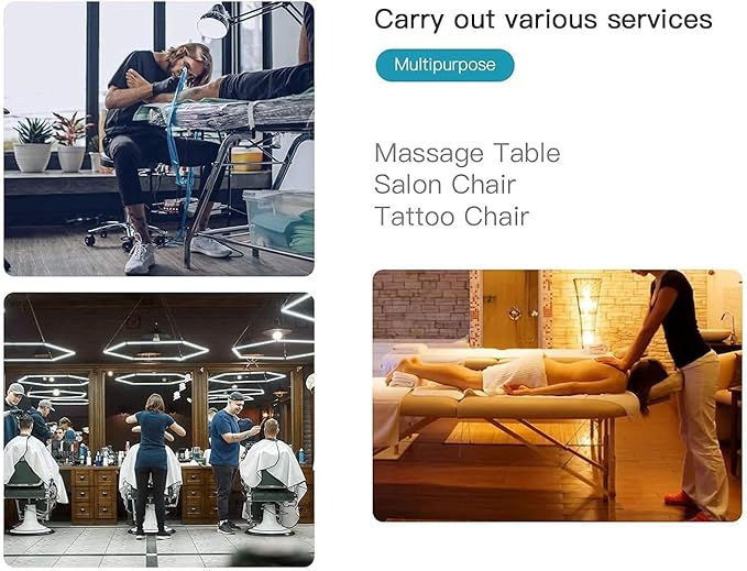 - Sturdy and Durable: The spa bed chair is constructed to provide sturdiness and comfort for clients. The bottom bracket of the salon chair is made of premium steel frame and can withstand heavy weight up to 450 lbs. The non-slip foot pads well prevent shaking or sliding during the use and ensure the safety and stability of the massage table.