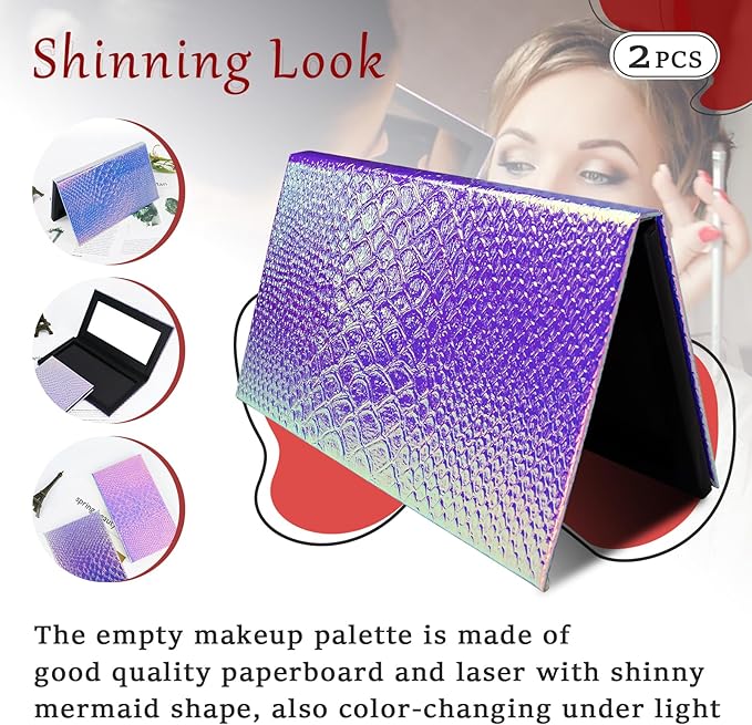 2 Packs Magnetic Makeup Palette Empty - Large Mermaid Palette with Mirror - Magnetic Palette for Storage & Travel