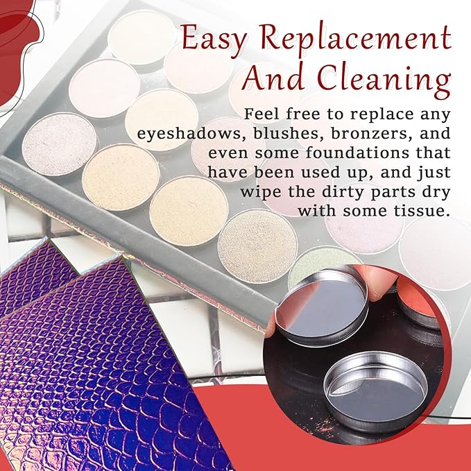 - This makeup palette is not only portable but also strong and durable, providing a secure storage solution for up to 18pcs of 1 inch round or square magnetic pans. The large size allows for easy organization and travel convenience, making it ideal for daily use and beauty routines.
