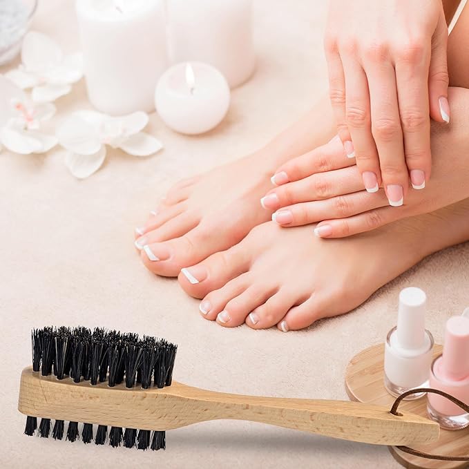 - Wooden Handle and Natural Bristles: The nail scrubbing brush measures approximately 6.9 inches in length and is made from solid wood, providing a secure grip and preventing slipping while cleaning your nails. The natural bristles are suitable for most skin types, making this vegan brush a great choice for those with sensitive skin.