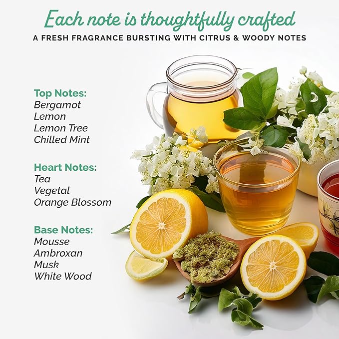 - OLFACTORY NOTES: Top Notes: Bergamot, lemon, lemon tree & chilled mint. Heart Notes: Tea, vegetal & orange blossom. Base Notes: Mousse, ambroxan, musk & white wood.