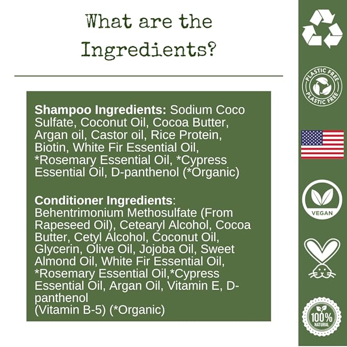 - SHAMPOO BAR AND CONDITIONER SET: Growth and Volume: Powerhouse trio nourishing, castor oil, biotin and rosemary, supports healthy hair growth and thickness. Ideal for gray hair and safe on color treated hair.