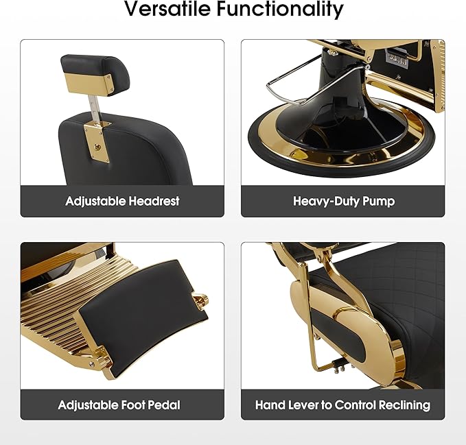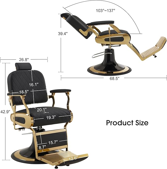 - Unique Design: This heavy duty reclining barber chair boasts a classic design with a coordinated backrest and seat cushion featuring attractive matching color adding a touch of design flairs,. The overall frame of the chair is smooth, with a special seat frame shape, the combination of classical and modern modeling is more eye-catching.