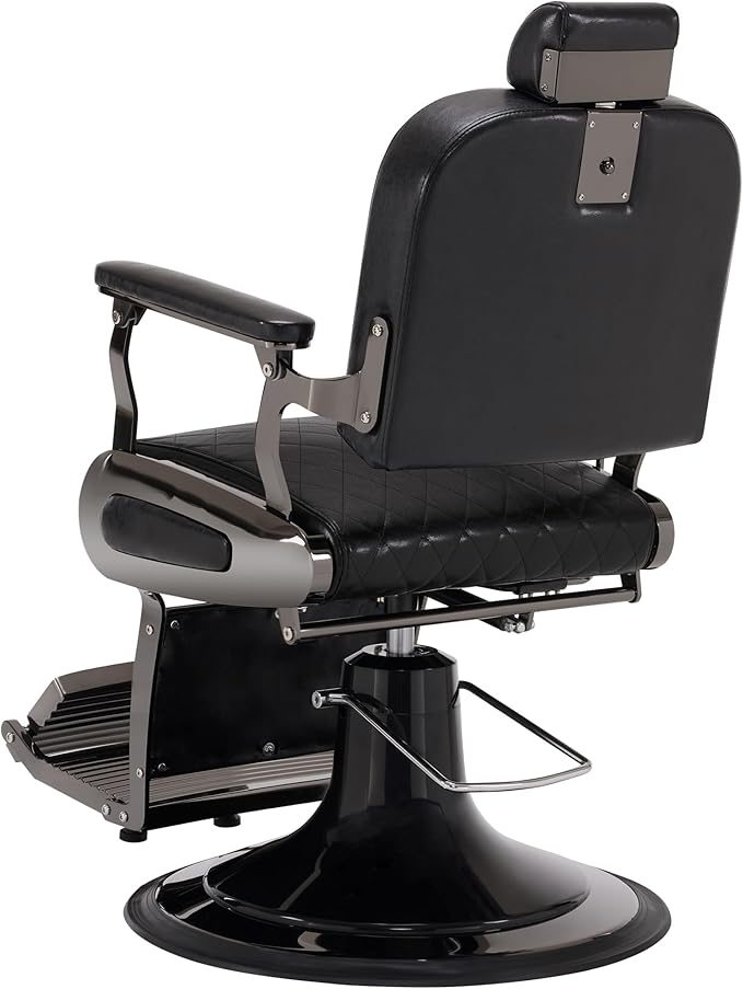 - Unique Design: This heavy duty reclining barber chair boasts a classic design with a coordinated backrest and seat cushion featuring attractive matching color adding a touch of design flairs,. The overall frame of the chair is smooth, with a special seat frame shape, the combination of classical and modern modeling is more eye-catching.