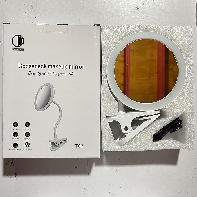 - 【24 Months After-Sales Service】 ✔️Package✔️Clip-on gooseneck makeup mirror *1, USB Cable *1. TUSHENGTU has strict quality inspection. We provide 24 months after-sales service. Please contact customer service for any problems in use. Clip on lighted makeup mirror