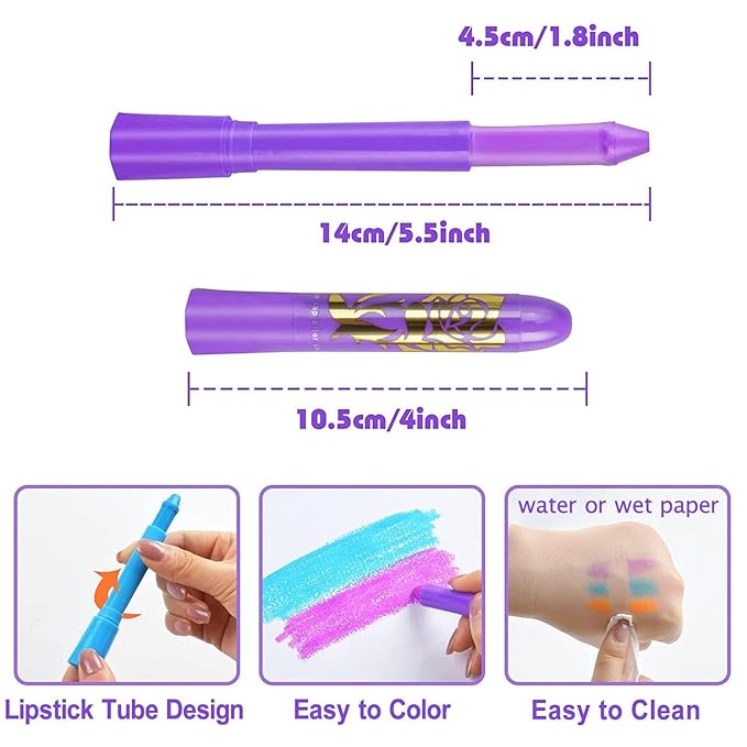 - [Safe for Skin] The face painting set includes washable crayons that are easy to remove with mild soap and warm water and will not irritate the skin of children and adults. If you are a little concerned, it is recommended to do a small skin test before use.