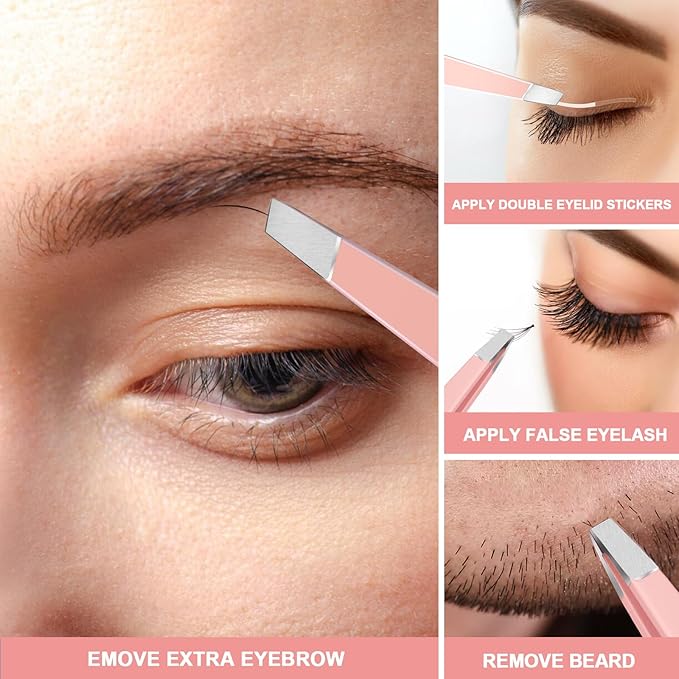 - Eyebrow Tweezers Set: The aligned slant tip eyebrow tweezers is used for accurate tweezing and remove, ideal for most of eyebrow, hair, beard. And the flat tip tweezers is for eyebrow defining, false eyelash, double eyelid stickers. The The tweezers are premium made that can be tightly closed without too much pressure for precise and easily removal. You can remove excrescent eyebrow easily and quickly without hurting your skin.