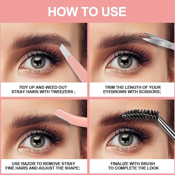- Eyebrow Razor& Eyebrow Brush: The eyebrow razor is designed with a transparent protective cover, resistant to dust and not easy to hurt skin. Netted blade, gentle and protect from hurting skin. Meet your different needs for removing excess hair. Easily and safely even for beginners. The eyebrow brush with a bendable brush head that can be used together with eyebrow tweezers for better trim effect.