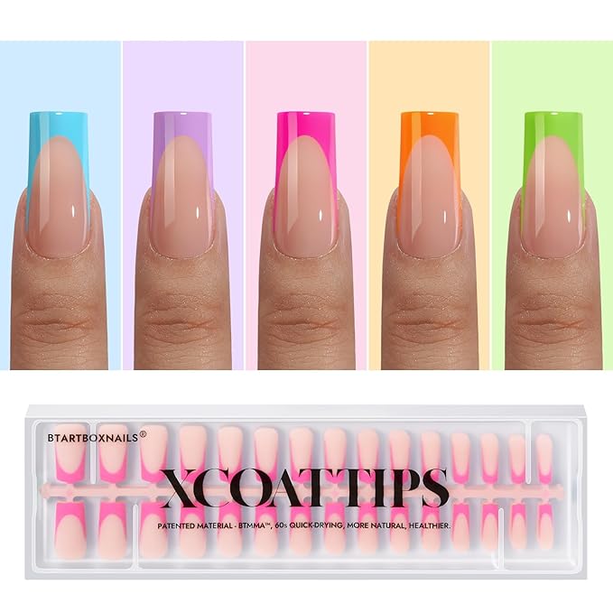 BTArtboxnails XCOATTIPS Press on Nails - French Tip Press on Nails, Long Sqaure Nail Tips, Brighter Pastel Soft Gel Nails False Nail, Soak Off Acrylic Fake Nails Art Extensions