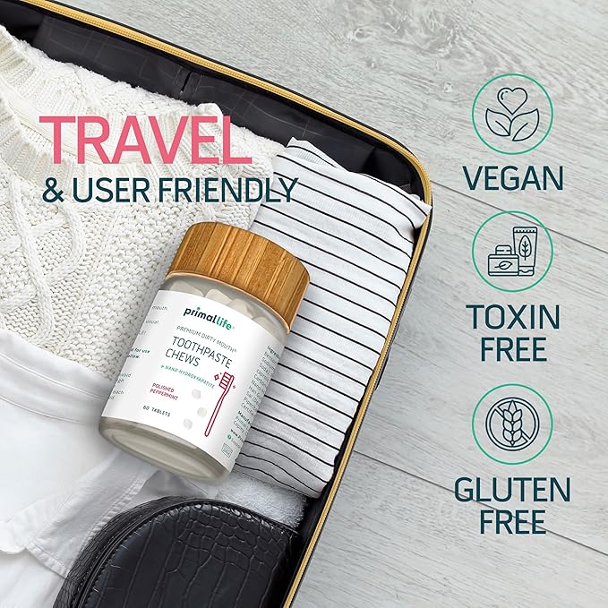 - TRAVEL FRIENDLY: Take our chewable toothpaste tablets anywhere! Available in a jar with 60 chewable tablets, perfect for fitting in a suitcase or handbag. Superior to toothpaste tubes that can burst open in your luggage.