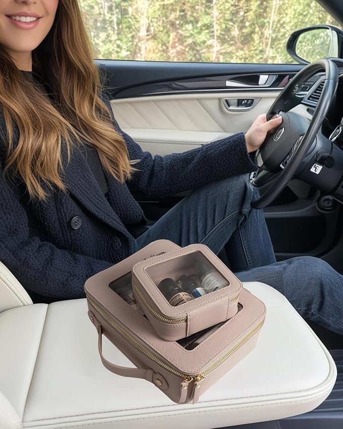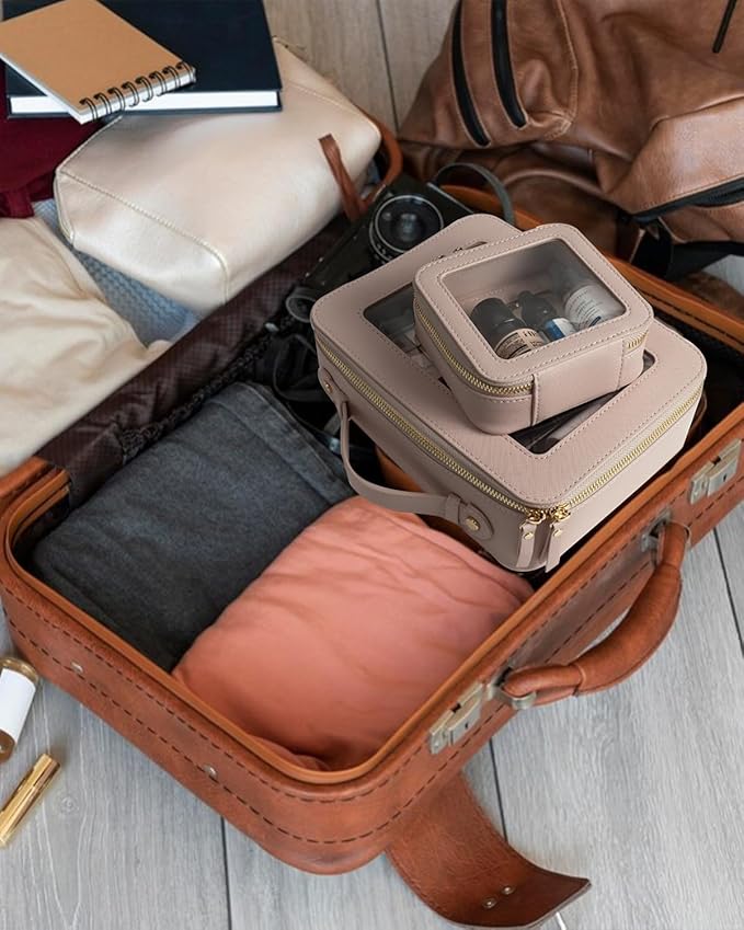 • Clear Design: Our clear toiletry bag set is sleek and minimalistic look for your makeup accessories collection. And is designed with a clear PVC window,all items are clear at a glance, and you can quickly choose the cosmetics you need. Large: 9.44“ x 6.1” x 2.7”, Mini: 5'' x 4.7'' x 2''