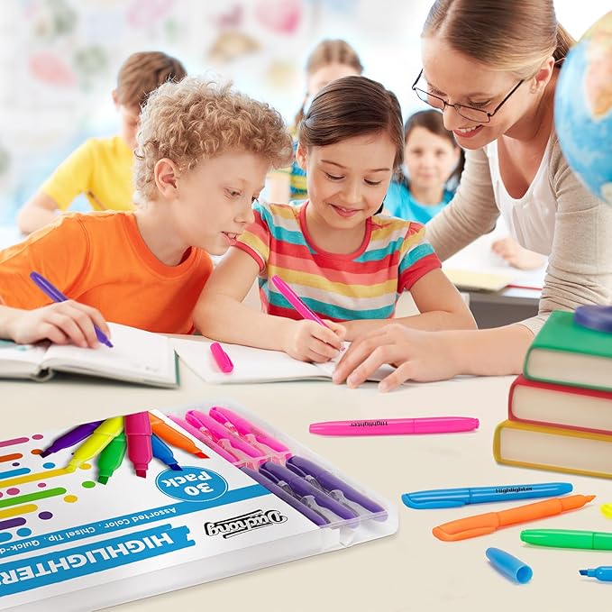 - Value Highlighters Set: Highlighters set includes 30 Pcaks bright highlighters with 6 colors of highlighters to choose from. Yellow, pink, blue, green, orange, and purple. You can easily color code notes and study materials to make your notes look clear and organized.