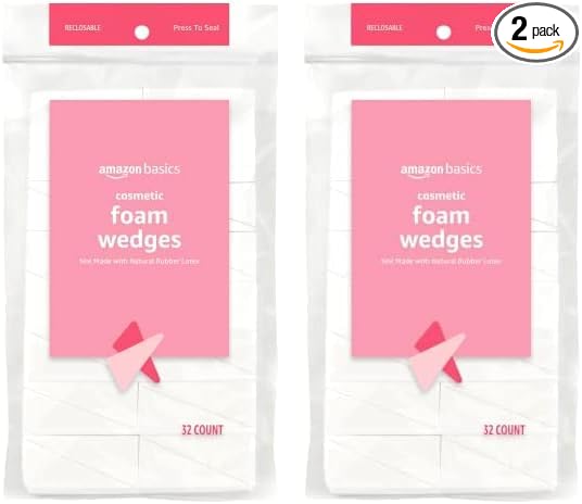 Amazon Basics Cosmetic Rectangular Foam Wedges For Makeup, 32 Count, White (Pack of 2)