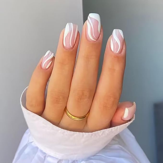 Swirl Press on Nails - 9 Styles, 12 Sizes - Almond, French Tip, Short Square Nails for Girl Nail Art