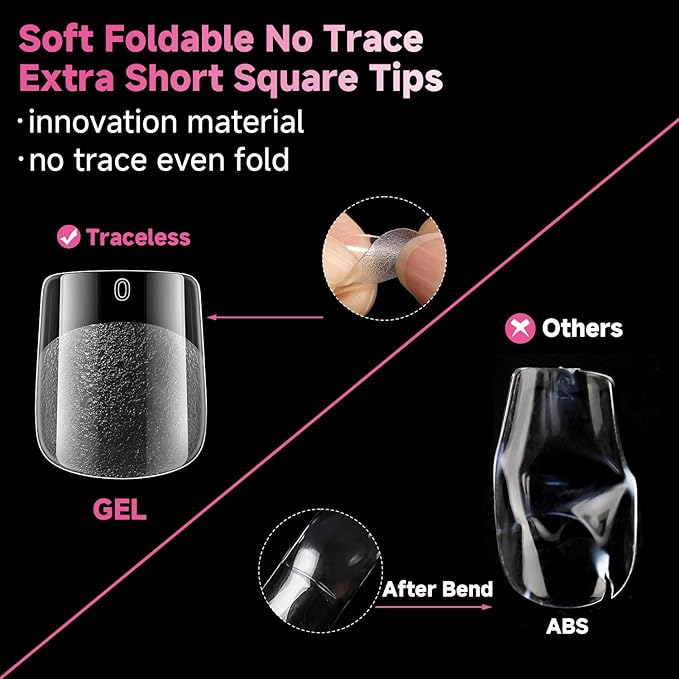- ❤️【Square Nail Tips with No Trace】The clear short square nail tips are gelly soft tips and will make no trace even bend, you can more easily press, trim, paint flat false nails to make your dream nails shape.